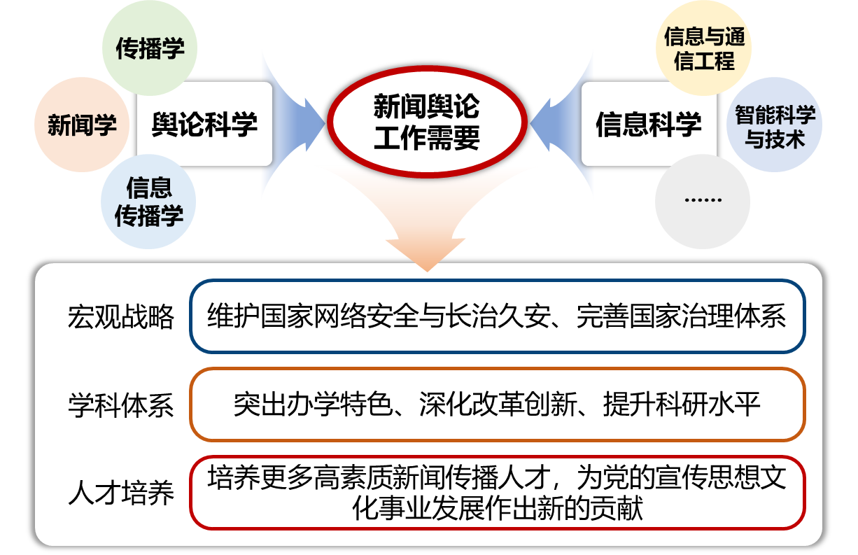 新闻舆论学(学硕:舆论智能计算与应用(0810J8);学博:计算视听与舆论科学(0810J8))新闻舆论学是构建中国新闻传播学自主知识体系的重要组成部分,是新文科、新工科交叉学科建设的前沿领域。建设新闻舆论学(计算视听与舆论科学)工学学术博士学位方向与新闻舆论学舆论智能计算与应用工学学术硕士学位方向,是数据科学与智能媒体学院为贯彻落实习近平总书记给中国传媒大学全体师生重要回信精神,“聚焦新闻舆论工作需要”,培养宣传思想文化领域战略科技力量的具体举措,旨在探索并形成实战化高水平新闻舆论学人才培养模式,培育具有多学科交叉背景与实战经验的创新人才,为党的宣传思想文化事业发展作出新的贡献。